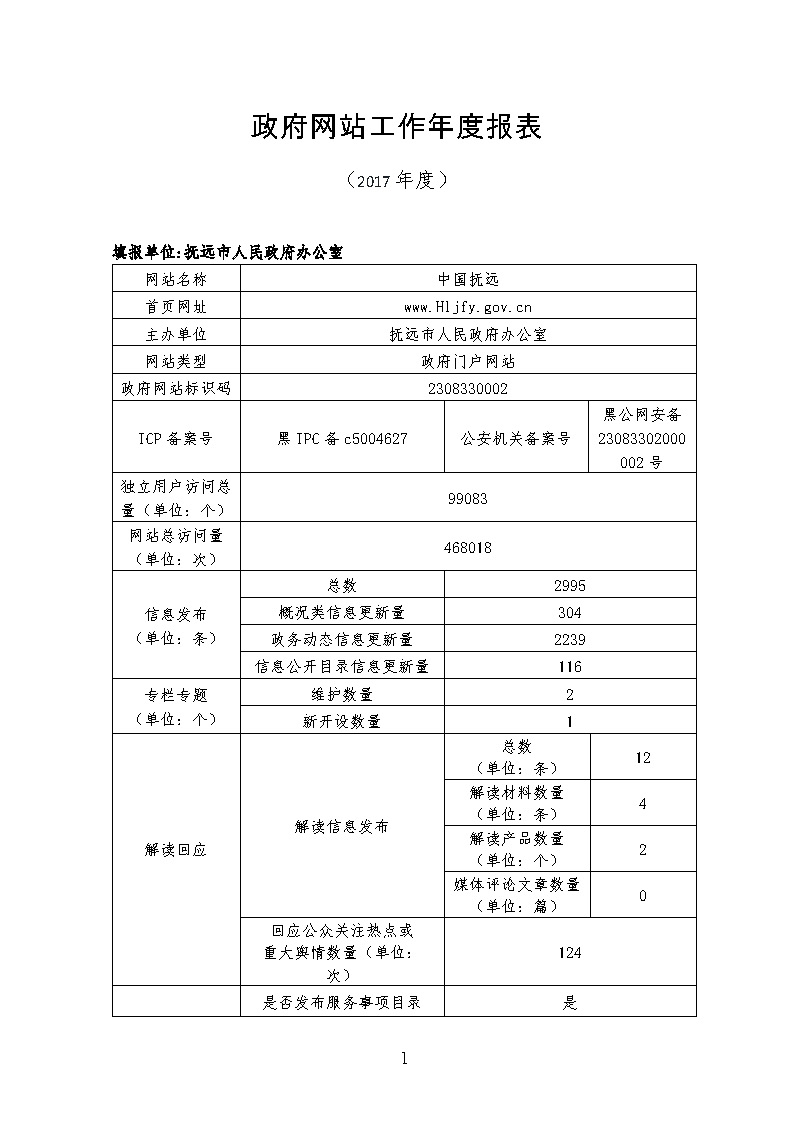抚远市2017年政府网站工作年度报表