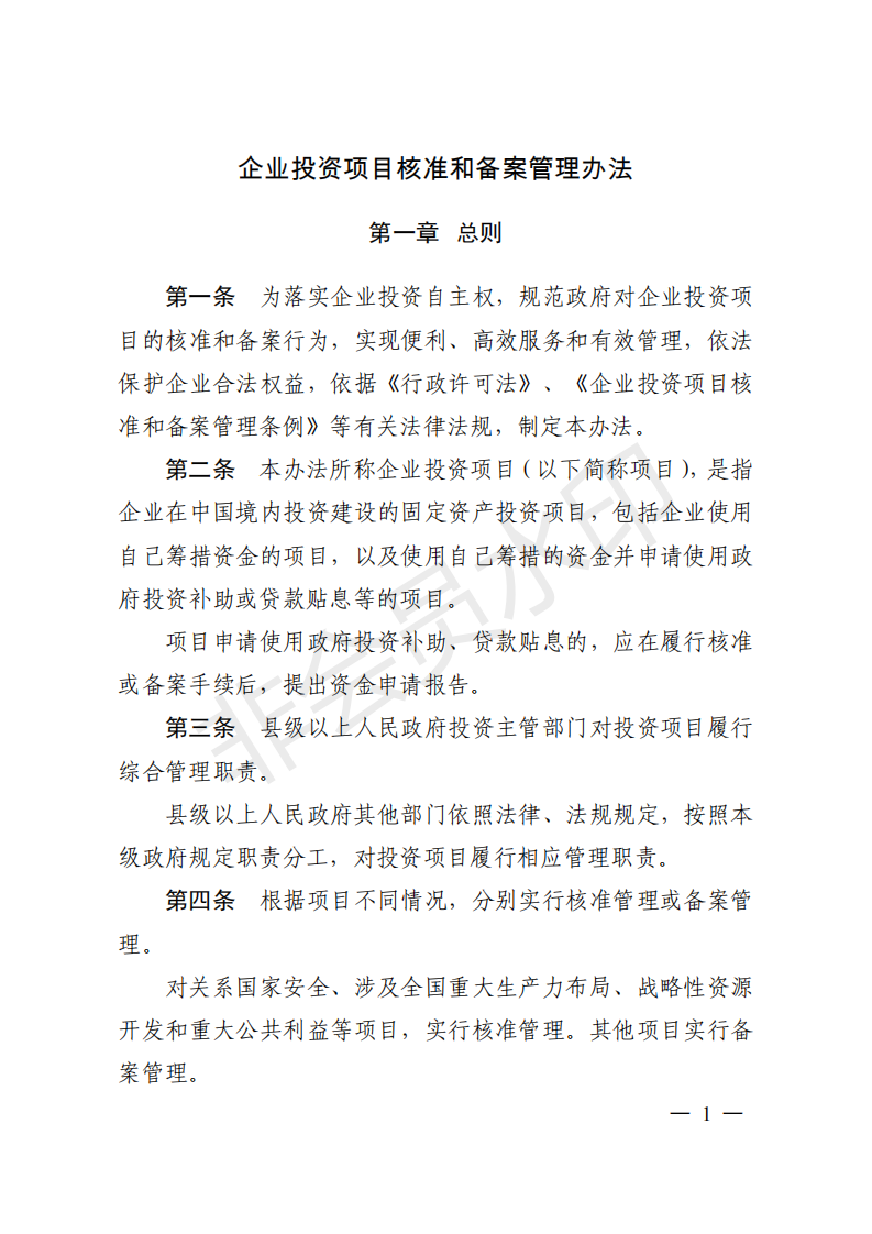 (发改局)企业投资项目核准和备案管理办法