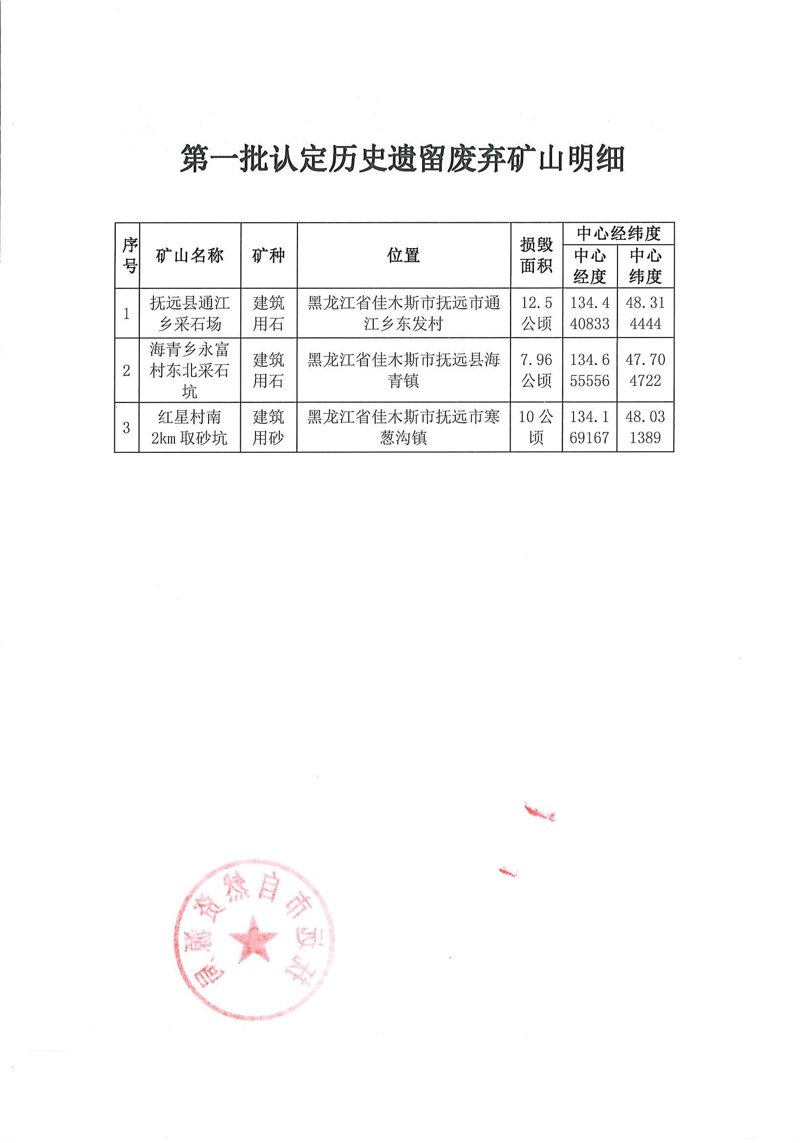 抚远市自然资源局关于历史遗留废弃矿山认定结果的公告