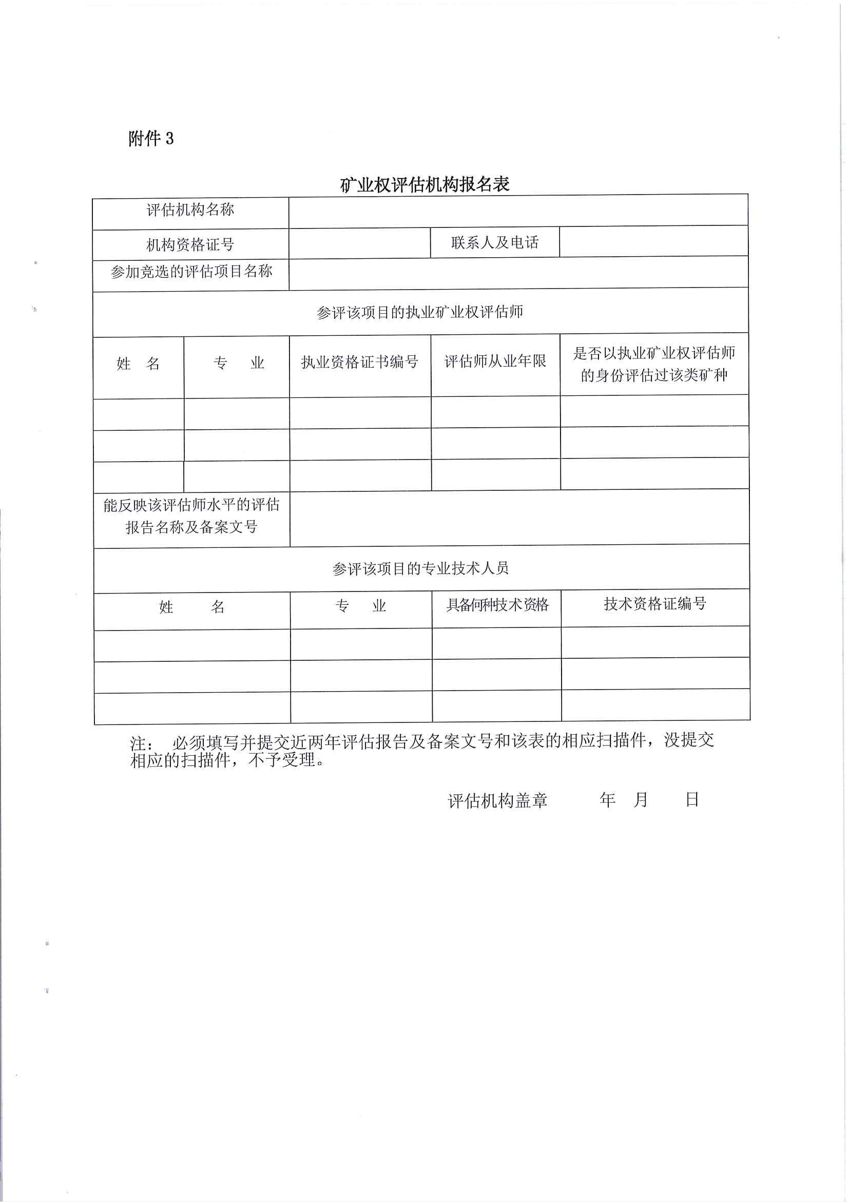 关于公开选择矿业权评估机构开展采矿权评估工作的公告