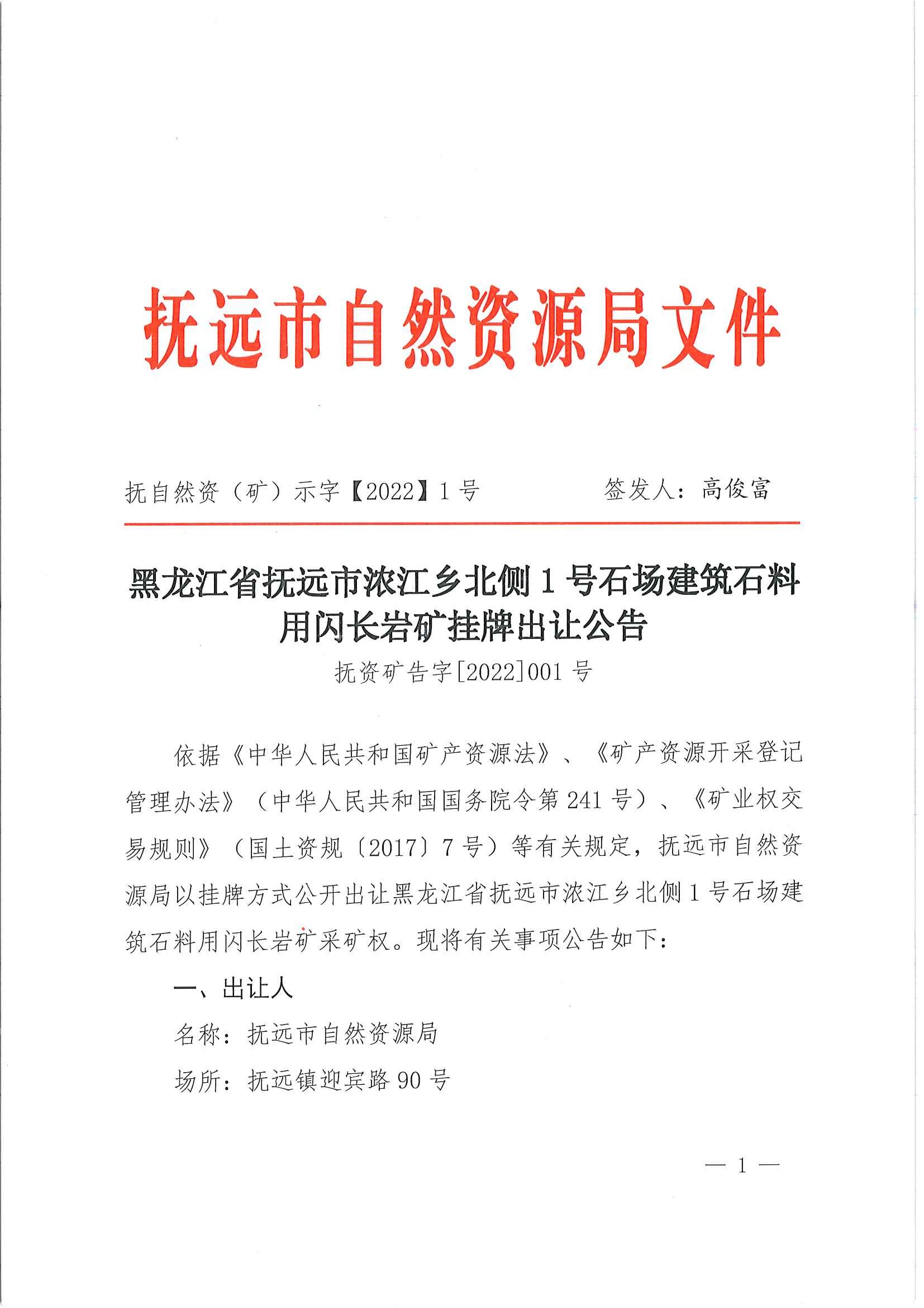 抚自然资(矿)示字【2022】1号