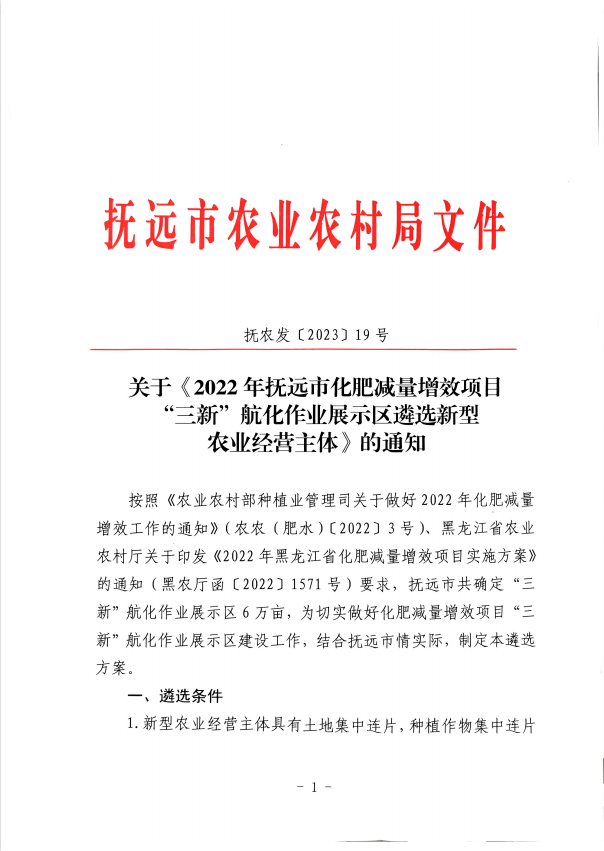 附件下载:1、2022年抚远市化肥减量增效“三新”航化作业展示区新型农业经营主体遴选评分细则.doc