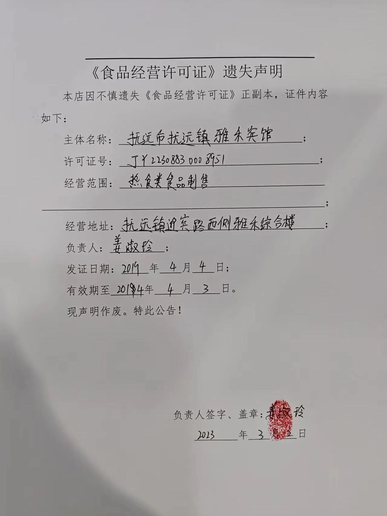 《食品经营许可证》遗失声明(2023.3.2)(5)